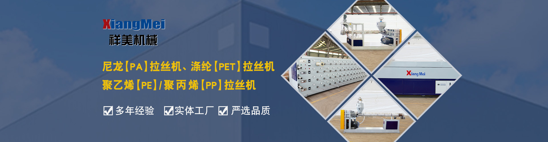 我公司是一家具有30多年專業(yè)生產(chǎn)塑料拉絲機的企業(yè),作為國內(nèi)最早生產(chǎn)圓絲塑料拉絲設(shè)備的企業(yè),成為國內(nèi)同行競相爭仿的標桿,公司產(chǎn)品主要可以生產(chǎn)聚乙烯(PE)、尼龍(PA)、聚丙烯(PP)、滌綸(PET)等作原料拉絲機設(shè)備及其配套設(shè)備、鉛芯機設(shè)備及其配套設(shè)備,拉絲機設(shè)備主要生產(chǎn)的產(chǎn)品有單絲、復(fù)絲、扁絲、刷絲、草坪絲、拉鏈絲、割草線等各類線絲,公司產(chǎn)品在國內(nèi)同行業(yè)中性價比高、有良好的口碑,曾獲“國家高新技術(shù)、新產(chǎn)品博覽會金獎”被輕工部定位替代進口產(chǎn)品、國家級新產(chǎn)品,并多次獲得省、市科技進步獎,產(chǎn)品遍布全國大部分地區(qū),并遠銷日本、意大利、俄羅斯、韓國、印度、澳大利亞、印度尼西亞、墨西哥、菲律賓、泰國、朝鮮、巴基斯坦、烏茲別克斯坦、越南、馬來西亞、老撾、越南、坦桑尼亞等國家和地區(qū)。 公司實行現(xiàn)代化企業(yè)管理,始終秉承以科技為先導(dǎo),制造為基礎(chǔ),管理為核心的企業(yè)面貌,運用先進的生產(chǎn)設(shè)備,創(chuàng)新的思維理念,確保產(chǎn)品多樣化、系列化,高品質(zhì),把誠信、責(zé)任、創(chuàng)新作為祥美人不斷的追求的目標,為新老客戶打造高品質(zhì)的拉絲設(shè)備。 公司位于黃海之濱、亞歐大陸橋東橋頭堡的海濱城市——連云港,這有海陸空便捷的交通網(wǎng)絡(luò)、風(fēng)景秀麗的山海風(fēng)光,總經(jīng)理江中堯先生攜公司全體員工竭誠歡迎各界人士、中外新老客戶來連洽談業(yè)務(wù)。